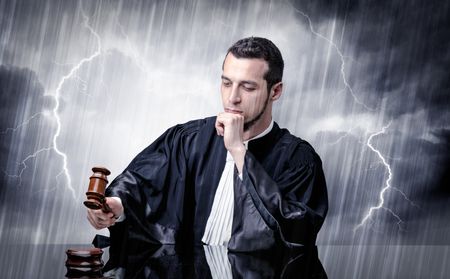 Young handsome judge with stormy wallpaper