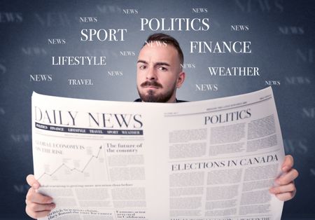 Young smart businessman reading daily newspaper