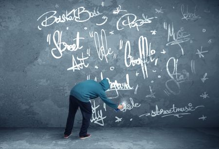 Young urban painter drawing graffiti on the wall