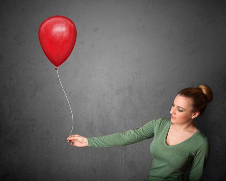 Young woman holding a red balloon drawing