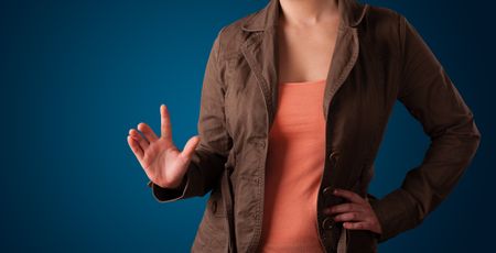 Young woman pressing imaginary button