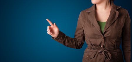 Young woman pressing imaginary button