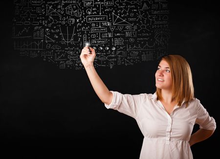 Young woman sketching and calculating thoughts and ideas