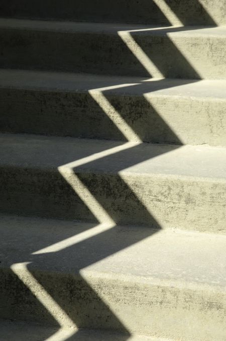 Zigzag shadow on sunlit concrete stairway