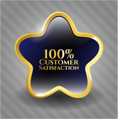 100% customer satisfaction blue shiny star with gold border