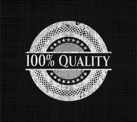 100% Quality chalk emblem written on a blackboard