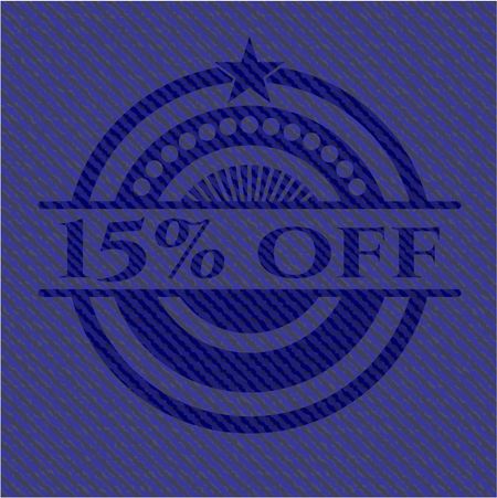 15% off badge with jean texture