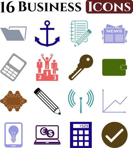 16 icon set. business Icons. Universal and Standard Icons.
