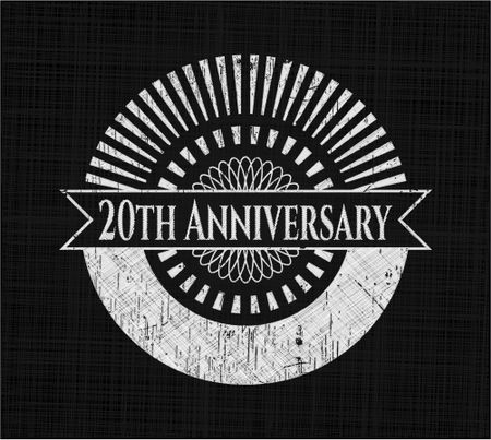 20th Anniversary chalkboard emblem written on a blackboard