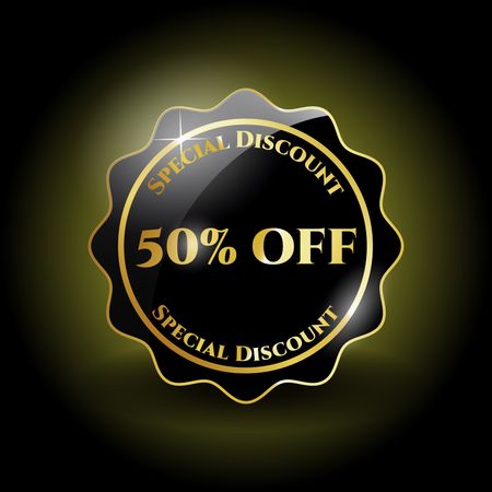 50% off black golden shiny label.