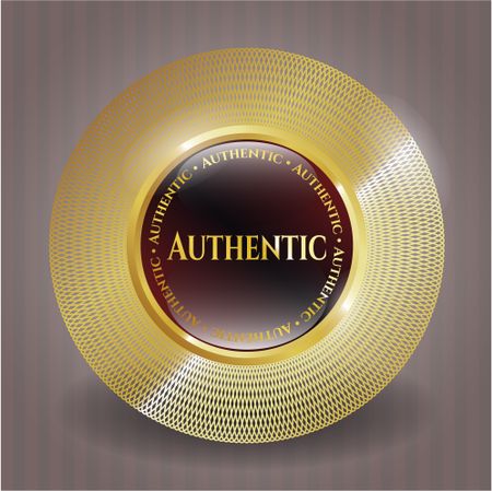 Authentic red shiny badge with complex gold border