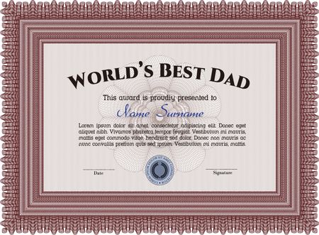 Award: Best dad in the world. With great quality guilloche pattern. Retro design.