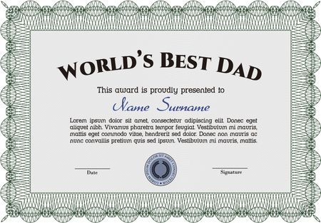 Award: Best dad in the world. Nice design. Detailed.With quality background.