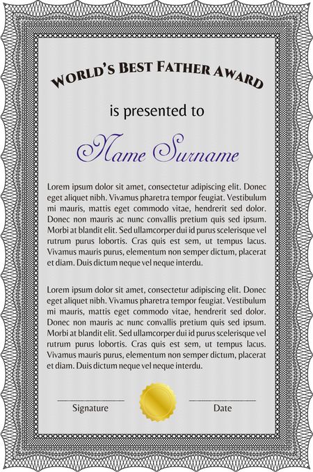 Award: Best dad in the world. Sophisticated design. With great quality guilloche pattern.