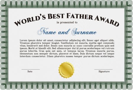 Award: Best dad in the world. Sophisticated design. With great quality guilloche pattern.