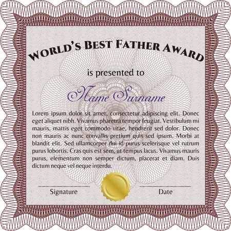 Award: Best dad in the world. Sophisticated design. With great quality guilloche pattern.