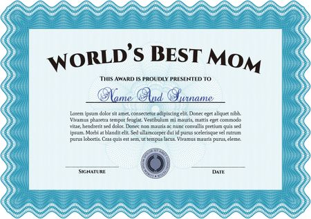 Award: Best Mom in the world. Border, frame.Complex background. Beauty design.