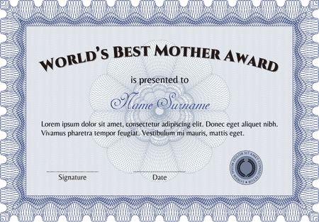 Award: Best Mom in the world. Customizable, Easy to edit and change colors.Easy to print. Superior design.