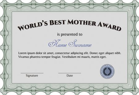 Award: Best Mom in the world. With guilloche pattern and background. Detailed.Cordial design.