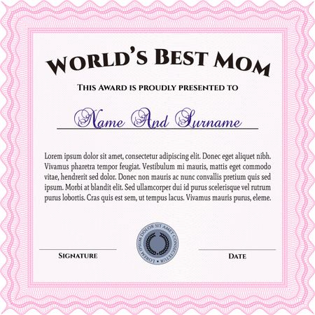 Award: Best Mother in the world. Sophisticated design. With great quality guilloche pattern.