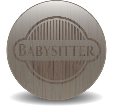 Babysitter badge with wood background