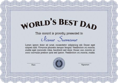 Best Dad Award. Cordial design. Detailed.Complex background.