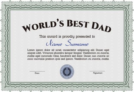Best Dad Award. With quality background. Border, frame. Superior design.