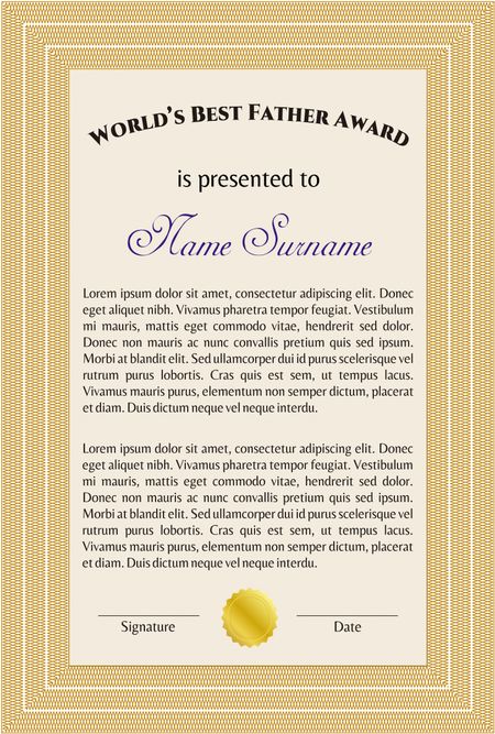 Best Dad Award Template. With guilloche pattern and background. Excellent complex design. Vector illustration.