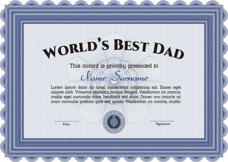 Best Dad Award Template. With guilloche pattern and background. Vector illustration. Excellent complex design.