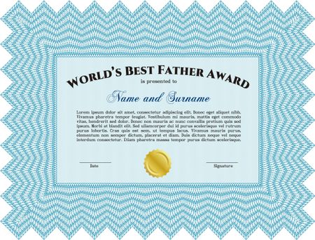 Best Father Award. With linear background. Border, frame. Beauty design.