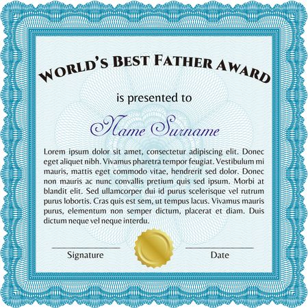 Best Father Award Template. Elegant design. With guilloche pattern and background. Vector illustration.