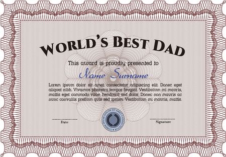 Best Father Award Template. With guilloche pattern. Vector illustration. Elegant design.