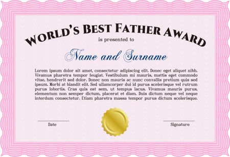 Best Father Award Template. With guilloche pattern and background. Vector illustration. Elegant design.