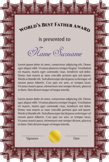 Best Father Award Template. Vector illustration. With guilloche pattern and background. Elegant design.