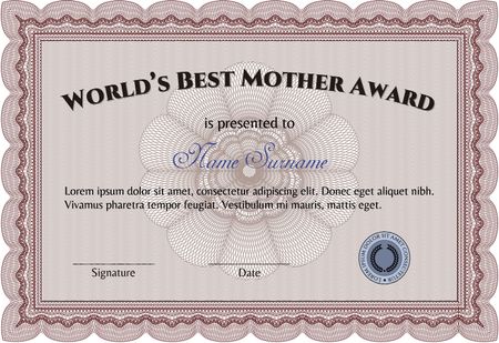 Best Mom Award. Cordial design. Detailed.With linear background.
