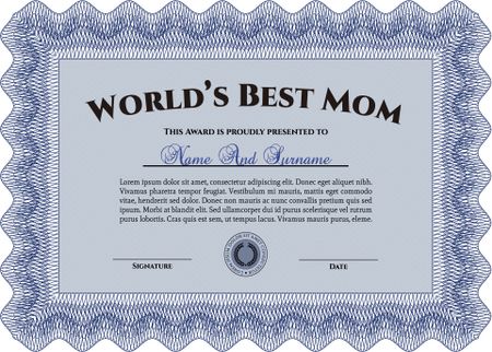 Best Mom Award. With quality background. Border, frame. Superior design.