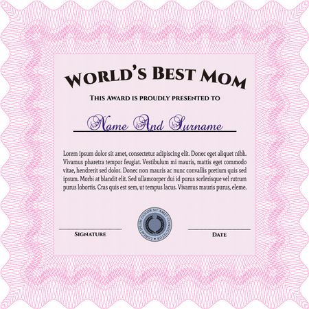 Best Mom Award Template. Customizable, Easy to edit and change colors.Elegant design. With great quality guilloche pattern.
