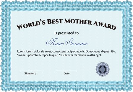 Best Mom Award Template. Excellent complex design. Vector illustration. With complex linear background.