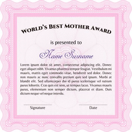 Best Mom Award Template. Excellent design. With complex background. Detailed.