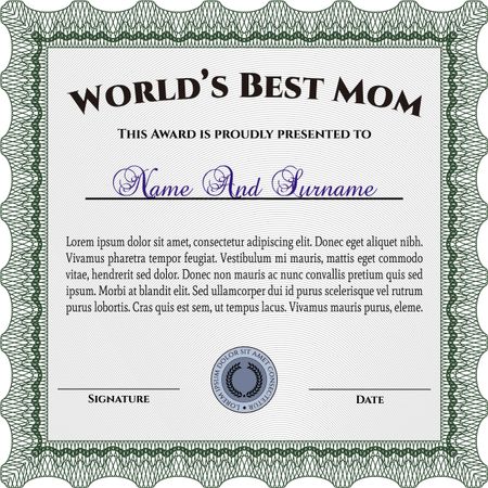 Best Mom Award Template. Excellent design. With background. Vector illustration.