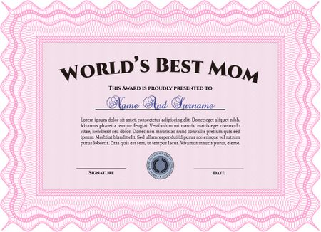 Best Mom Award Template. With guilloche pattern and background. Customizable, Easy to edit and change colors.Lovely design.