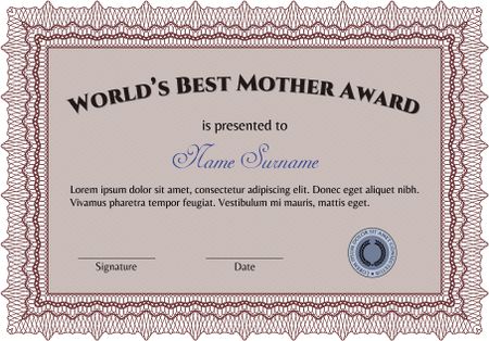 Best Mom Award Template. With guilloche pattern and background. Excellent complex design. Vector illustration.