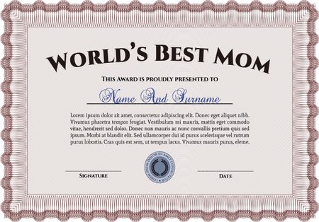 Best Mother Award. With complex background. Superior design. Vector illustration.