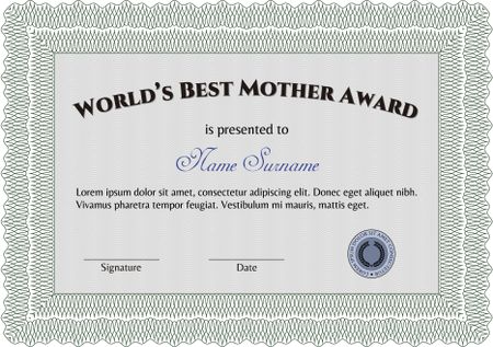 Best Mother Award Template. Artistry design. Detailed.With great quality guilloche pattern.