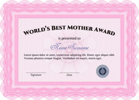 Best Mother Award Template. Cordial design. With great quality guilloche pattern. Customizable, Easy to edit and change colors.