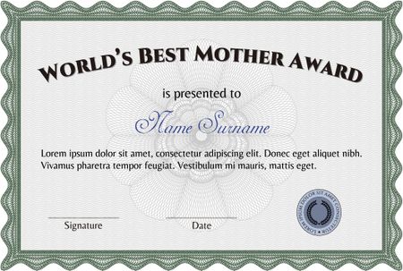 Best Mother Award Template. Easy to print. Detailed.Excellent complex design.