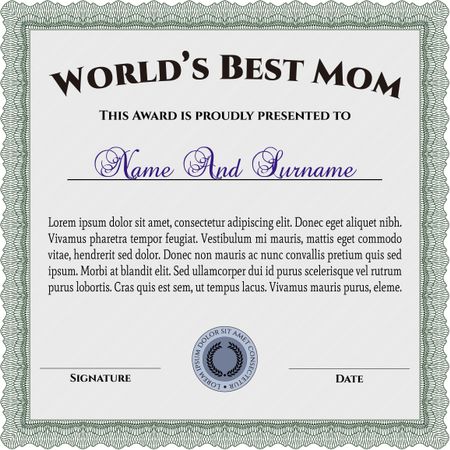 Best Mother Award Template. Elegant design. With guilloche pattern and background. Vector illustration.