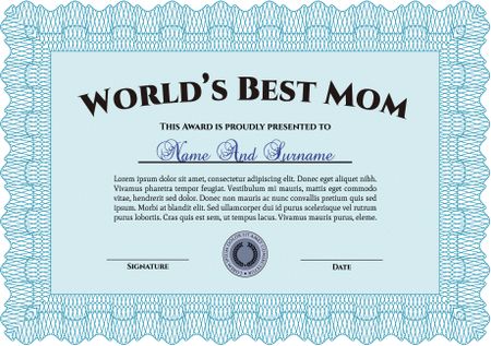 Best Mother Award Template. With guilloche pattern. Elegant design. Vector illustration.