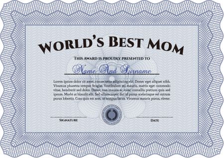Best Mother Award Template. With guilloche pattern and background. Elegant design. Vector illustration.