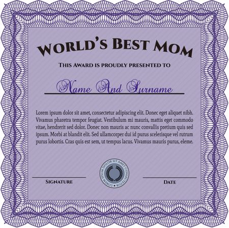 Best Mother Award Template. Vector illustration. Elegant design. With guilloche pattern.